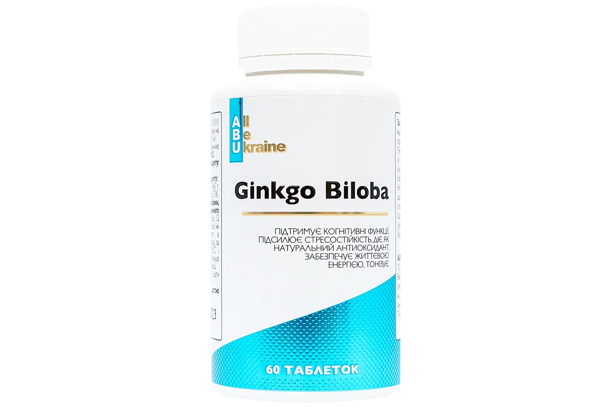 Підтримка когнітивних функцій від ABU (All Be Ukraine) Гінкго Білоба Ginkgo Biloba 60 таблеток